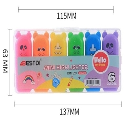 ابعاد جعبه 13 در 5.5 سانتیمتر است و داخل هر بسته 6 عدد ماژیک هایلایت طرح خرس وجود دارد.